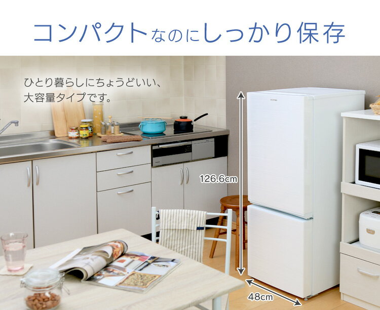 コンパクトなのにしっかり保存!ひとり暮らしにちょうどいい、大容量タイプの2ドア冷凍冷蔵庫です。