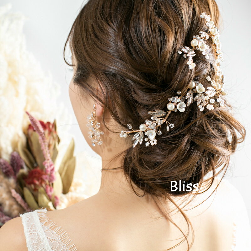商品情報 サイズ バレッタ(ヘッドドレス)約27cm×約15.5cmイヤリング約5.5cm(長さ)×4.2cm(最大幅) 素材 バレッタ(ヘッドドレス)合成金属クリスタルビーズ、ラインストーン、ラインストーン、フェイクパール、合成樹脂イヤリング合成金属、クリスタルビーズ、ラインストーン 留め具 バレッタクリップ付きカラー ゴールドウェディング ヘッドドレス&イヤリング【華やか 小枝ゴールドフラワーバレッタ&小枝イヤリング】ヘッドアクセサリー ヘアアクセサリー ブライダル 髪飾り 小枝アクセサリー ナチュラル リーフ ビジュー フラワー 花 小物 ※ ウエディング 結婚式 二次会 和装 発表会 優しいピンク系のゴールドがナチュラルな輝きで花嫁様を引き立ててくれます。
