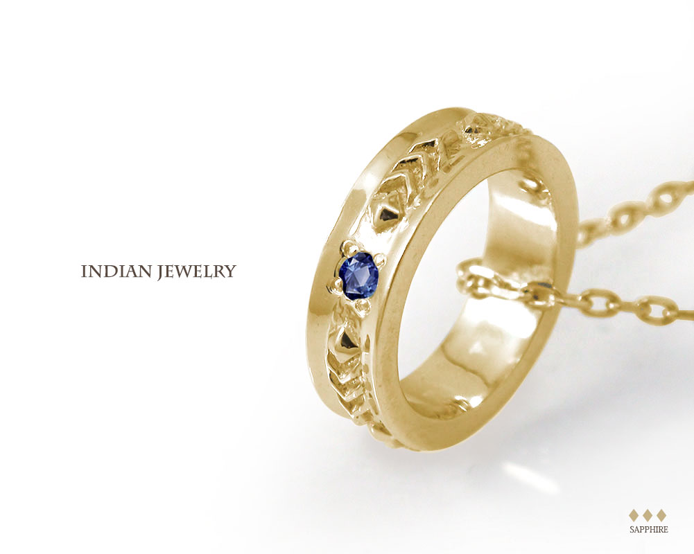 インディアン フェザー 羽 ネックレス ベビーリング サファイア 10金 ペンダント ネイティブ カラーストーン チャーム【送料無料】