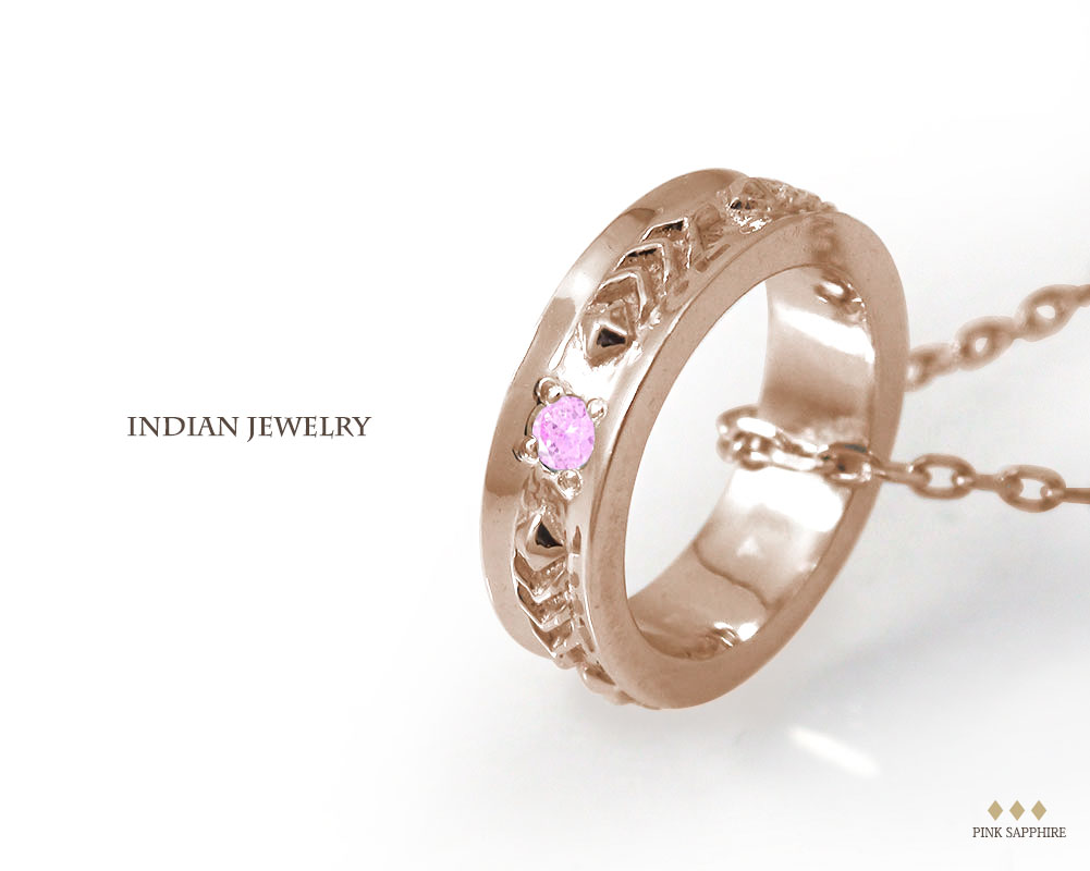 ピンクサファイア 18金 インディアン フェザー 羽 ネイティブ ネックレス ベビーリング ペンダント カラーストーン チャーム【送料無料】