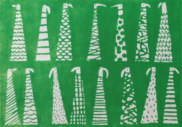 SANKAKUDORI / GREENサンカクドリ / グリーン約140×200cm 素材:ナイロン(ソフティナ)100% パイル長:約12mm 機能:防ダニ加工、防炎、床暖房・ホットカーペット対応、遊び毛出にくい 生産国:日本製